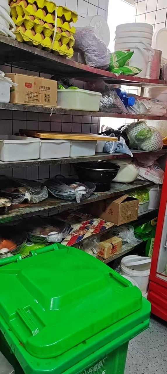 1.后厨操作间环境卫生差,存放杂物较多;