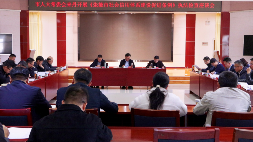 4月14日,市人大常委会副主任杨发东带领执法检查组来丹开展《张掖市社会信用体系建设促进条例》执法检查。县委常委、常务副县长郭强参加座谈会,县人大常委会副主任李秀琴陪同检查。